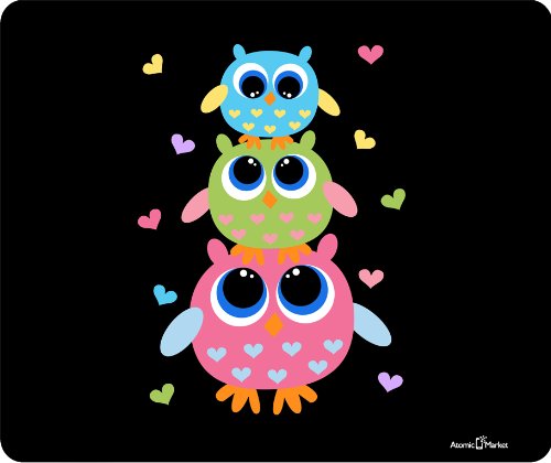-. Title : 3 Owls With Hearts Thick Mouse Pad