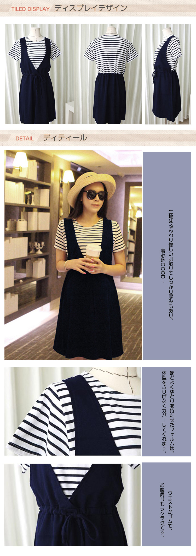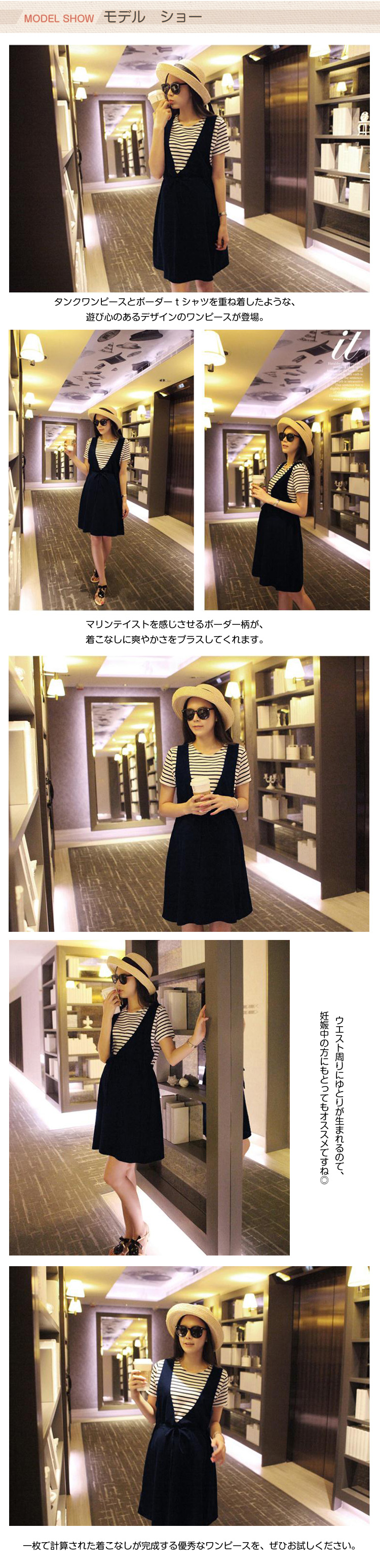 | タンクワンピースとボーダーtシャツを重ね着したような、遊び心のあるデザインのワンピースが登場。マリンテイストを感じさせるボーダー柄が、着こなしに爽やかさをプラスしてくれます。ウエスト周りにゆとりが生まれるので、妊娠中の方にもとってもオススメですね◎一枚で計算された着こなしが完成する優秀なワンピースを、ぜひお試しください。 | |
