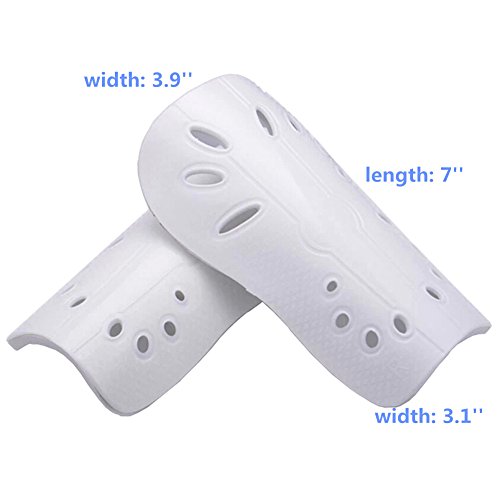 Features: Black/ White Plate inserted shin pads, Light Weight; High quality Ergonomic three-dimensional design, perfectly fit the curvature of the lower leg, tightly packed to provide the best protection Thick EVA lining, wearing comfort, softness moderate, high permeability; Under Leggings ventilation openings on each side panel design Shin pads sponge heavy-bottomed 8 mm, thick sponge during exercise better protect your patella Black Pocket Socks: Double Thin models with jack, can effectively fixed Shin Pads and prevent the Shin Pads fall off during exercise, suitable for summer use Specifications: shin pads Weight: 3.8 OZ shin pads size: 7.1' x 4.1' x 0.3' shin pads Composition: 80% polyethylene, 20% EVA (inside) Socks size: 9.0' x 5.5' Suitable for big boy with above 5.4' High Pocket socks advantages: 1. The board directly inserted into the pockets of socks, the board is not in direct contact with the legs, more comfortable with it, more suitable for summer band; 2. Board in the fierce campaign will not decline; 3. No need wear long socks, do not worry about falling.