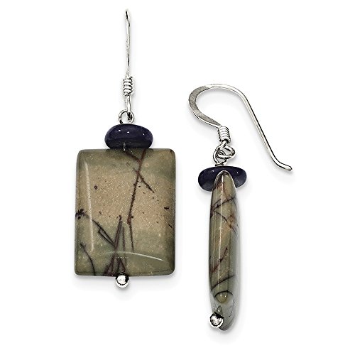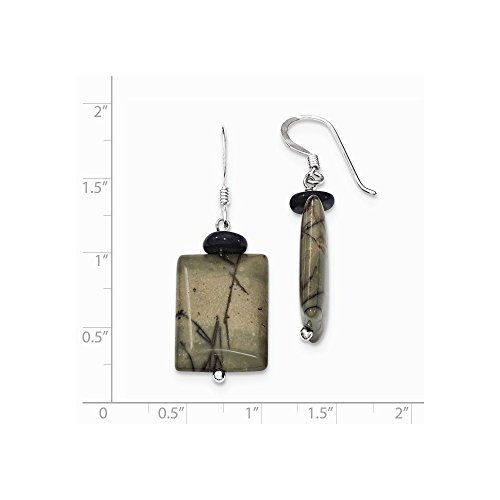 Solid 925 Sterling Silver Black Mother of Simulated Pearl & Picasso Simulated Jasper Earrings (15mm x 43mm)
