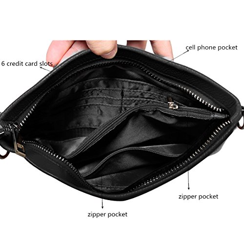 -. Feature : Material: 100% Genuine Leather---The purse is made of First Layer Cowhide Leather, NOT cow split leather nor PU plastic. / Roomy and Functional---Contains two generous main pockets with two zipper pockets, and 6 credit card slots, 1 cell phone pocket(Great size for iphone6s plus). It is great for multiple cards, bill and receipts, cash and coins, lipstick; also easy hold your iphone 6s/6s plus, iphone 6/6 plus, Samsung Galaxy S4. / 3-Way to USE---You can use it as Wallet/Clutch Bag,or Wristlet with the short removable strap, or Crossbody Bag/Shoulder Bag with the long removable strap. / Smooth Zipper and High quality Hardware---The zipper is smooth enough, and there is no need to worry about stuck issue. Well designed and quality gold-color hardware is high resistance to rust, corrosion and tarnishing. Shiny as a new one even years later. The detail stitching matches the wallet. / Perfect Size and Color Choice---Dimensions(L*W):9.5"*6.5"*0.39", Weight:10 ounces ; Fit for casual use/dating /party /wedding /workplace /travel /business. A great gift for family and friends.