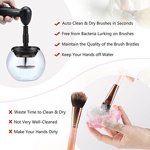 - HEALTHY & ECONOMICAL - makeup brushes should be cleaned at least three times per month to remove old makeup, dirt, oil and bacteria on makeup brushes to prevent skin problems, the brush cleaning machine do the job well, keep your brushes clean and extend their lifespan.