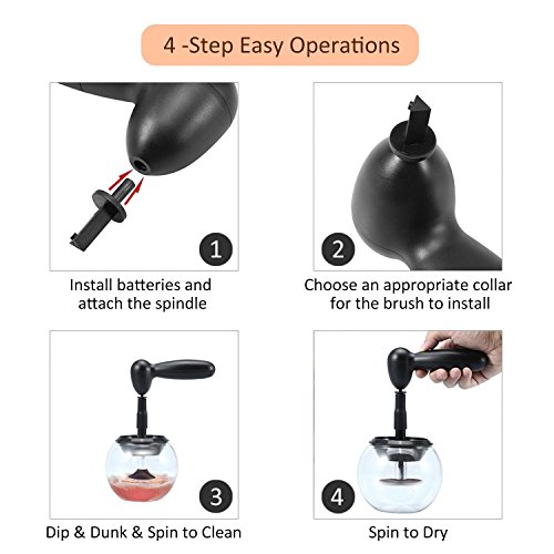 - EASY TO USE - attach the brush to the spinner - Spin and rinse - Spin to dry it, just 3 steps to clean and dry your brushes, so easy to use, and you can keep pressing the power button to speed up the rotating speed.