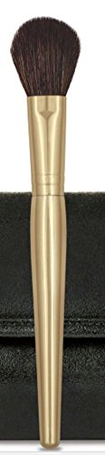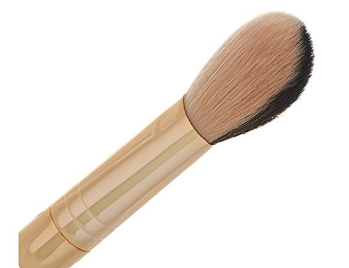 - Use the end with the synthetic, champagne-colored bristles to sweep on emollient cream blushes and concealers