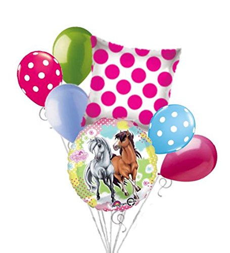 -. Feature : 1 - 18" Charming Horses Round Balloon / 1 - 18" Hot Pink Polka Dots on Clear Square Balloon / 5 - 12" Mixed Latex Balloons (Lime Green, White Polka Dots on Wild Berry, Light Blue, White Polka Dots on Light Blue, Rose) / Packaged & Shipped together / Helium and Ribbons are not included
