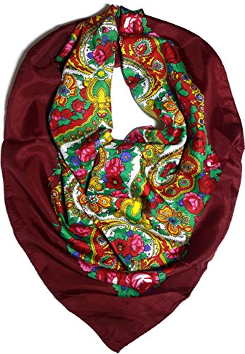 Studio : Polish Folk Scarfs Shawls Publisher : Polish Folk Scarfs Shawls Binding : Apparel Product Description Folk head scarves with delicate floral paisley patterns from Lowicz or Highlander region have been popular in Poland for many centuries. Formely, the scarves formed an integral part of the women's folk costume in almost all regions of Poland. Today, they serve as a fashion accessory that complement the outfit for all seasons. Available in variety of colors, these screen-printed scarfs will add a touch of elegance to any wardrobe. Made of a lightweight fabric: 30% cotton and 70% viscose. Measures approx. 27" x 27". Made in Poland. Easy care: hand wash with mild soap or detergent and line dry, cool iron. Do not use bleach. 0