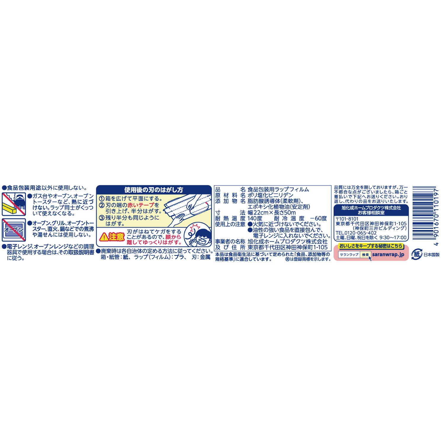 【Ingredients】 Polyvinylidene chloride 【Additive name】 Fatty acid derivative (softener), Epoxidized vegetable oil (stabilizer)