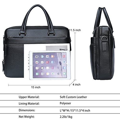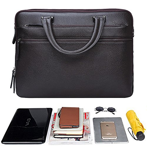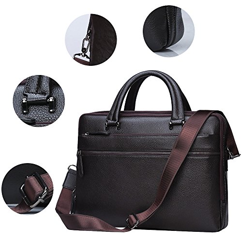 Product Description A successful man usually needs a nice business bag which can be used in office, meeting, business travelling or daily life, this is just the one! This is simple and practical everyday use bag. Designed with top handles and adjustable shoulder strap, you could use it as a handbag, shoulder bag or cross-body bag. If you're looking for a combination of retro and modern styles in a durable leather briefcase, just click "ADD TO CART" now! Basic Informations: Item weight: 2.2 lb Dimensions(L*W*H): 15" *4" *11.5" Remarks: 1. There may be a bit smell when you get this bag, since it's new unused. You could open the package and put it in a ventilate place for a few hours, then the smell will fade away. 2. Because each piece is individually crafted, the color may vary slightly. 3. Pls confirm the size according to our description instead of the photos. PU is polyurethane. Polyurethane leather has excellent performance. Due to the impact of animal protection associations, coupled with the development of technology, polyurethane synthetic leather performance and application is more than natural leather. After adding ultrafine fiber, the toughness and permeability of polyurethane, wear resistance has been further strengthened. There is no doubt that the finished product is quite excellent. 0