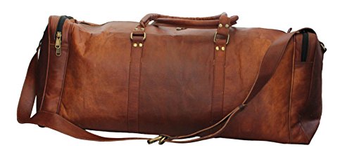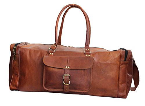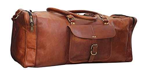 -. Feature : Strong & Durable: Imported Leather, Heavy Brass Fittings & Buckles, Branded Zippers, Olive Green Heavy Duty Canvas Lining. / Dimensions (In inches) : 24 "(L), 9.5(H), 7.5"(D) / Features: Joining hook-and-loop top handles and removable/adjustable cross-body strap with padded shoulder. 1 small Front pocket,1 Back side small zip pocket, 2 side zipper pocket, 1 main big compartment. Easy and comfortable to carry. Perfect to use as Lage, Travel Gym , Overnight bag , Suitable for carrying Cloths , Shoes , Your Personal Stuff etc. / Natural & Quality : Completely Handmade Leather , Naturally (using vegetable oil) tanned Fair Trade goatskin produced by small family businesses. / Authenticity & Purity : "D' Leather "Label is purity of Fair trade goatskin leather, Handmade item so Please careful while making purchase , To get a purity Please Avoid attractive offers.