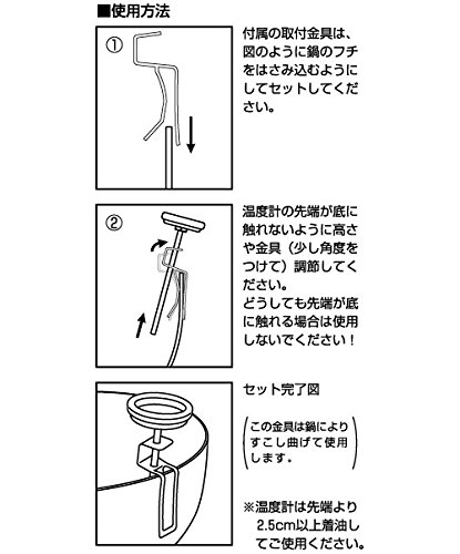 -. Feature : サイズ:径3.8×高さ11.5cm / 重量:0.2kg / 材質:温度計部/アルミニウム合金、カバー/シリコーンゴム、取り付け金具/ステンレス鋼、温度センサー/真鍮(ニッケルめっき仕上) / 原産国:中国 / 温度センサー長さ:約10cm / 測定範囲:0℃~200℃ / カラー:グリーン / 付属品:取り付け金具(鍋の形やサイズに合わせて調節できます) / ※水洗厳禁