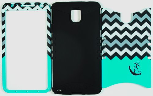 Galaxy Note 3 Case, Bastex Heavy Duty Hybrid Protective Case - Soft Teal Silicone Cover with Chevron Anchor Hard Design Shell Case for Samsung Galaxy Note 3