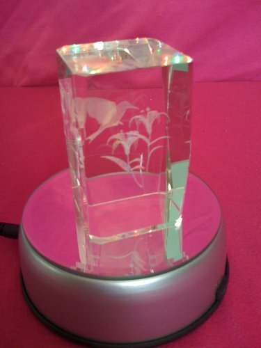 Laser Krystal International Etched Crystal Cube Light-Up LED Base with Adaptor, 4", Silver