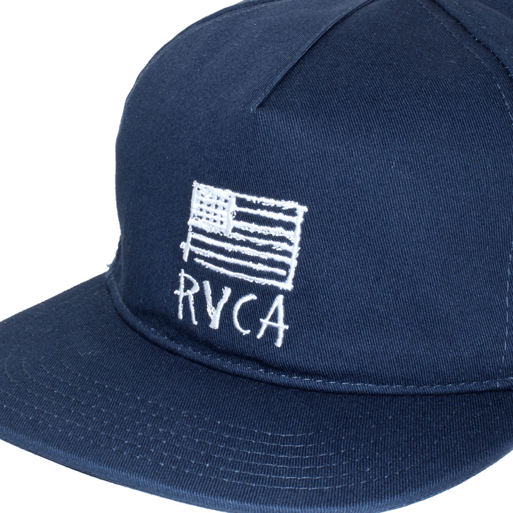 渋めのネイビーカラーが好印象なベースボールキャップです。 フリーハンド調のラフなタッチで、星条旗とロゴを刺繍でフロントに配した落ち着きのある大人好みなデザイン。 また、サイズ調整ベルトも爽やかな2ラインが施され、後ろ姿もサマになるオススメのアイテムです。