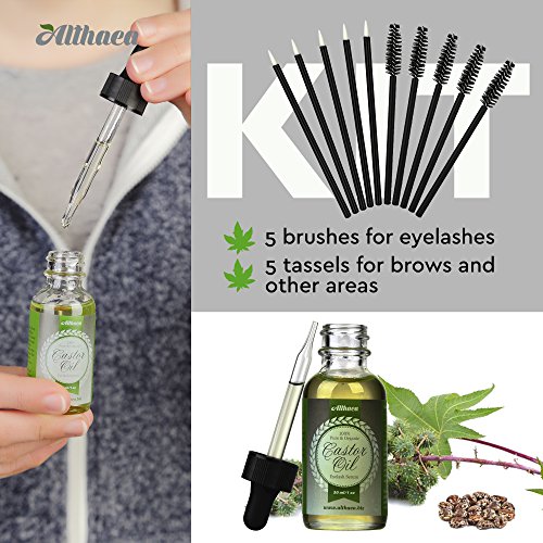Unique options of using Castor Oil - Certified organic castor oil by Althaea, first of all, is meant for strengthening and growth of eyelashes and brows. That is why we included in a set 5 brushes and 5 tassels for comfortable oil laying. Potent castor oil is put onto the eyelashes in the same way as mascara.