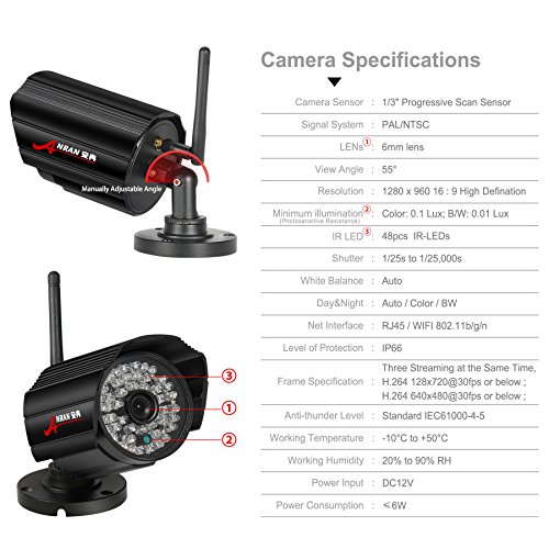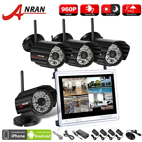 ANRAN 4CH 960P HD WIFI NVR 12Inch LCD Monitor Outdoor Wireless Security System with 4pcs Megapixel Day Night IR IP Network Cameras Plug Play No Hard Drive