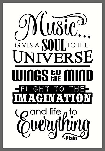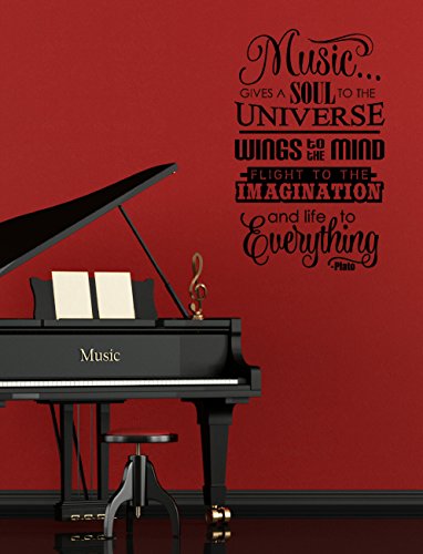 WALL DECOR PLUS MORE WDPM3364 MUSIC GIVES LIFE TO EVERYTHING WALL DECAL QUOTE LETTERING ART LARGE, 33X20-INCH, BLACK