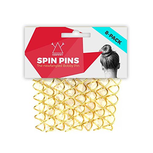 Spiral Bobby Hair Pins / Twist Screw Hair Pins / NON-SCRATCH ROUNDED TIPS / 8 Pack / Gold for Blonde Hair / Gold Spin Pins by HAWWWY