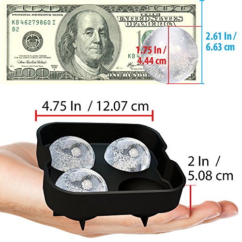 LARGE SLOW-MELTING ICE BALLS MAKER – 4 x 4.5cm (1.78 inch) Balls Capacity Tray Creates Slow Melting Ice Spheres that melt much slower than traditional ice cubes. It’s been proven that ice spheres melt slower than ice cubes.
