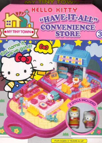 -. Binding : Toy -. Brand : Sanrio -. EAN : 0039937774609 -. IsAdultProduct : 0 -. Label : Sanrio -. Manufacturer : Sanrio -. ProductGroup : Toy -. ProductTypeName : TOYS_AND_GAMES -. Publisher : Sanrio -. Studio : Sanrio -. Title : Japanese Hello Kitty Mini Take Along Doll House W 2 Figurines - My Tiny Town - "Have It All" Convenience Store -. UPC : 039937774609