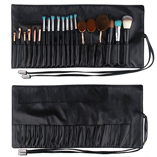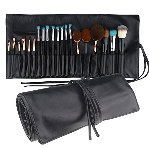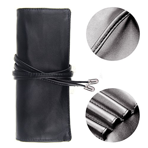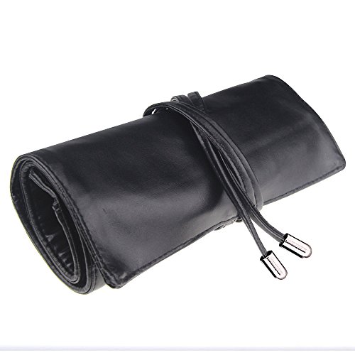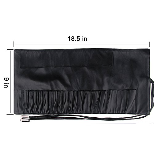 MLMSY Makeup Brush Rolling Pouch Brushes Holder Cosmetic Bag Organizer Travel Portable 18 Pockets Cosmetics Brushes Leather Case (Black)