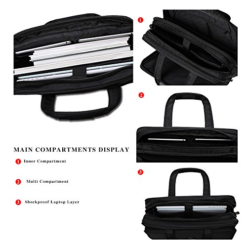 -. Feature : Multi-functional compartments, with strengthened shockproof foam padding to protect your device. The laptop briefcase with 10+ compartments offer independent spaces for your laptop, iPhone, iPad, passport, pens, keys, wallet, watch, charger, MP3, 4A file, books, clothes, umbrella, bottle and more. Easy to find what you want / Expandable capacity ( 7 to 9 inches ) - The expansion zipper makes the computer bag more flexible, it can be transformed as a duffelbag whenever you need. / Soft lined laptop sleeve holds a laptop up to 17.3 inches, suitable for most MacBooks / Macbook air / Acer Chromebook / Acer Aspire / Acer Flagship / HP pavilion / Dell inspiron 15 / Dell inspiron 13 / Notebooks / Tablet / Ultrabooks / PC Computer devices / ASUS / Apple / Windows / Ipod / Netbook / COMFORTABLE:Removeable and adjustable PU padding shoulder strap, and dual sturdy handles for long time comfortably carrying. / CONVENIENCE: A wide Lage belt securely attaches briefcase to most rolling lage. It is really convenient for your happy journey to any where.