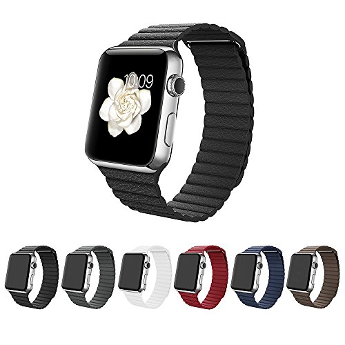 Apple Watch Band 42mm, BRG Leather Loop with Adjustable Magnetic Closure iWatch Band Replacement Bracelet Strap for Apple Watch Sport and Edition 42mm Medium - Black B01CHXUSJU