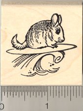 -. Title : Surfing Chinchilla Rubber Stamp - Wood Mounted