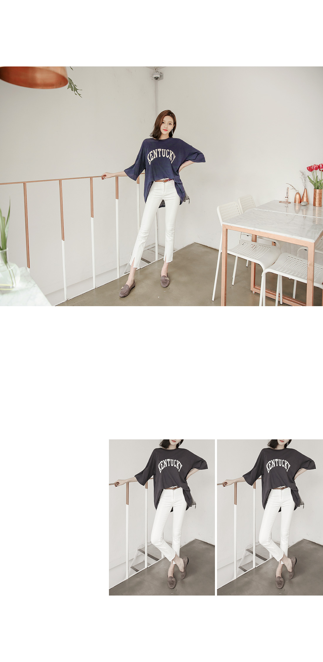 드롭된 어깨선과 여유있는 핏감의 레터링 디테일이 가미된 티셔츠아이템을 소개해드려요~^^여유있는 핏감으로 누구든지 편안한 착용감을 느낄 수 있어요~적당한 두께감의 티셔츠 아이템으로계절에 구애없이 데일리하게 코디매치할 수 있는 활용도 높은 아이템이예요~프론트 중앙부에 레터링 디테일이 가미되어단품으로 착용해도 스타일리시한 분위기의코디매치를 할 수 있답니다~
