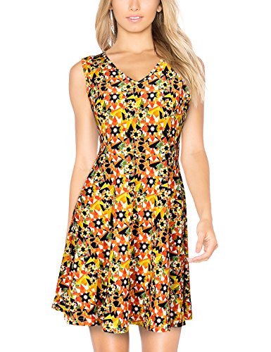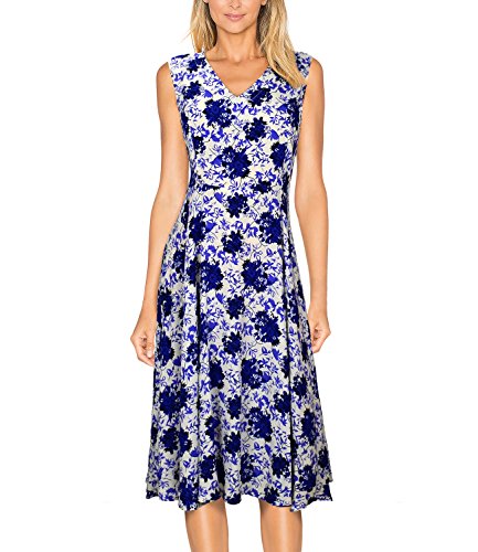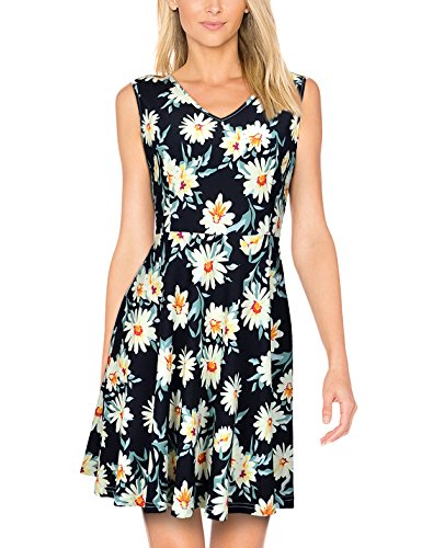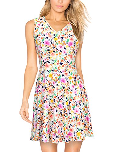 A dazzling fit and flare dress like this is the true herald of summer and spring, suit for dail casual, garden party and all other occasions. This cute A-line skirt features colorful floral print, sleeveless & v-neckline, princess-seamed bodice and wide swing design. Made of soft touch and elastic material, very comfortable for skin, it's lightweight and airy. The classic style that will never go out of fashion. Garment Care: Hand or Machine Wash Cold Gentle, Line Dry in Shade.