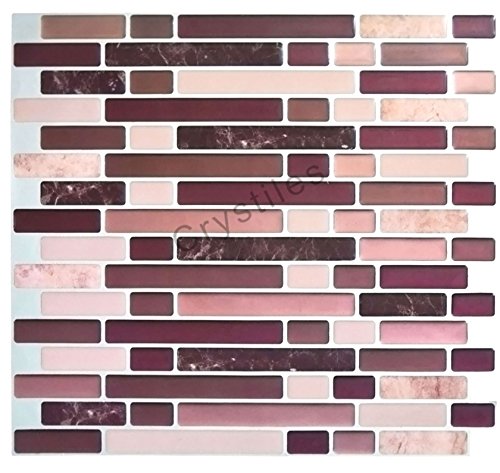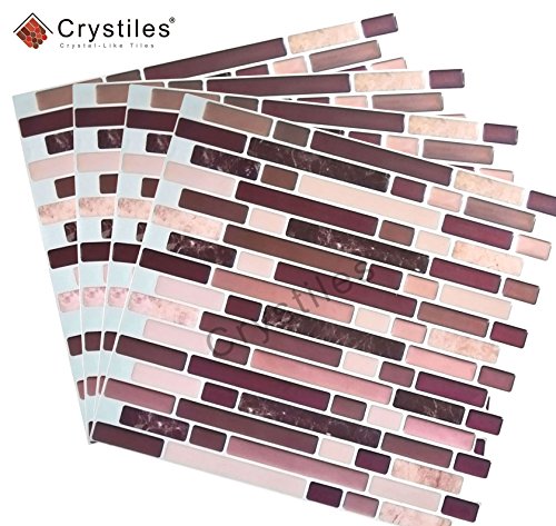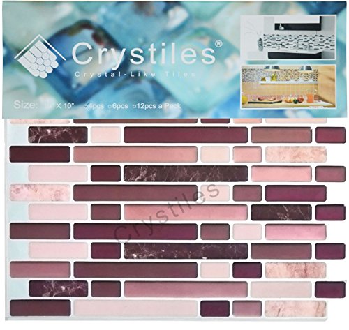 Crystiles Peel and Stick Self-Adhesive DIY Backsplash Stick-on Vinyl Wall Tiles for Kitchen and Bathroom Décor Projects, Item# 41010816, 10” X 10” Each, 4 Sheets Pack