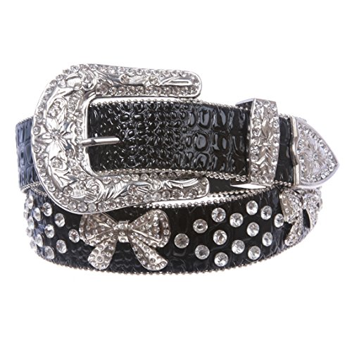 -. Title : 1 1/2" Snap On Western Rhinestone Bowknot Studded Alligator Leather Belt