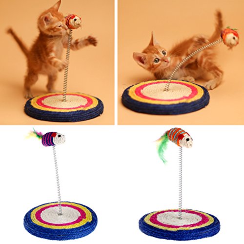 Features: This product is made of natural sisal refined, non-toxic, very strong scratch resistance, suspension design. The toys made of natural sisal as raw materials, natural not allergic, lovely shape, bright color With the spring, once the cat touch the toy, the top mouse will swing accordingly, the mouse looks like alive, attracting cats' interest.. The cat always wants to catch mouse in the process of touching the toy. So this kind of toys very suitable for cats. Specification: For pets: Cats Material: Sisal Diameter: app.19cm/7.48' Height: app.21cm/8.27' Color: Random delivery (If you buy more than one,the color you received may be the same color or different colors) Quantity: 1 Pc Note: 1.Please allow 1-3cm error due to manual measurement. pls make sure you do not mind before you bid. 2.Due to the difference between different monitors, the picture may not reflect the actual color of the item. Thank you! Package includes: 1 x Cat Toy (without retail package) 0