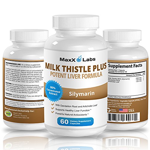 Milk Thistle Extract 250mg (80% Silymarin) ★ NEW ★ Potent Liver Cleanse Complex Formulated with Artichoke Leaf Extract (125mg) and Dandelion Root...