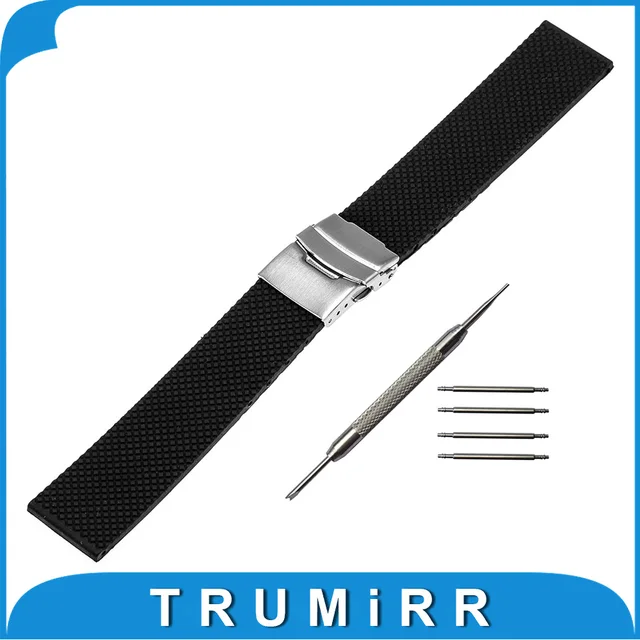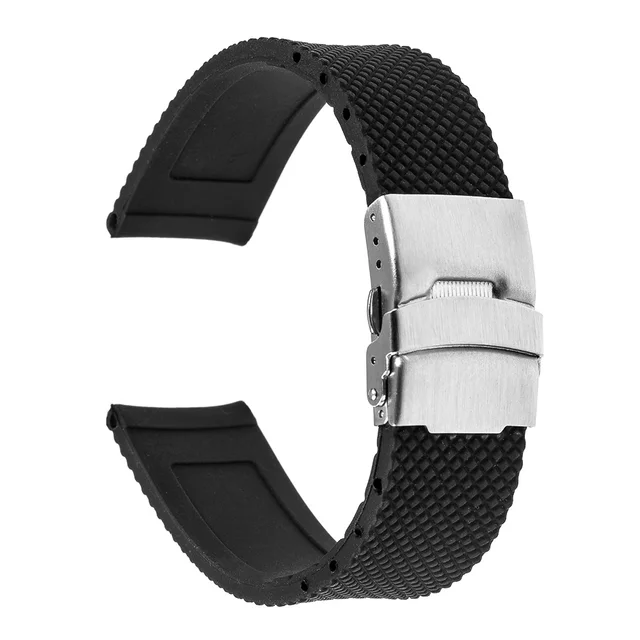 | [해외]20 미리메터 실리콘 고무 시계 밴드 조약돌 시간 라운드 20 미리메터 브래들리 계시 스테인레스 스틸 버클 스트랩 수지 팔찌 블랙 |