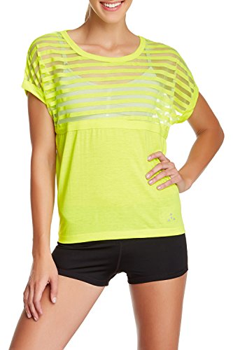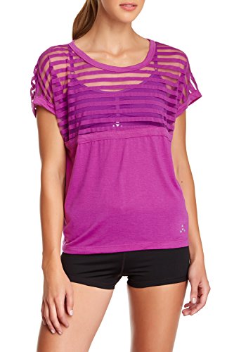 Binding : Apparel Product Description This Balanced Tech Women's Burntout Striped Tee is made from Lightweight 73% Polyester/ 27% Rayon fabric that's super soft and comfortable is a must have in any yoga and lounge wardrobe. Wear it as a layering piece, after gym, alone around the house or to sleep in. Top features Sheer striped solid construction, front logo accent, crew neck and shorts sleeve. You'll find many reasons to make this T-shirt yours. ?About the Brand - "Balanced Tech" - Balanced Tech is an activewear brand that infuses technology, Driven by the latest trends with style and comfort for everyday goals and challenges. Whether you are working up a serious sweat or hanging out on a Sunday, you can always look and feel great with Balanced Tech! 0