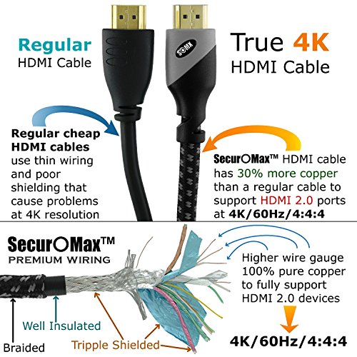 HDMI Cable 3ft - HDMI 2.0 Ready (4K @ 60Hz, 18Gbps) - Braided Cord (28AWG) - High Speed (Category 2) with Ethernet & Audio Return - Video 4K 2160p, HD 1080p, 3D - Xbox PlayStation PS3 PS4 PC Apple TV