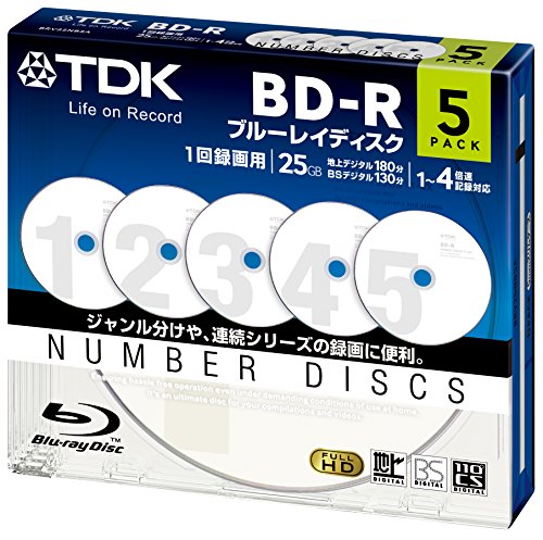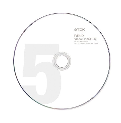 TDK Bluray Disc 25 gb BD-R 4x Numbered Discs Series HD Discs 5 Pack in Jewel Cases
