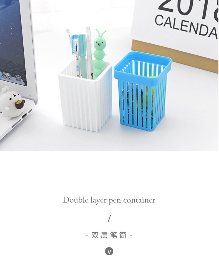 创意时尚双层笔筒可爱小清新学生笔擦桌面办公笔座文具整理收纳盒