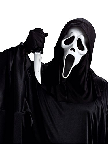 Product DescriptionGhost Face Mask With Knife The classic serial killer from the Scream movies! Official Ghost Face mask and knife. Please read valuable information regarding latex products.0
