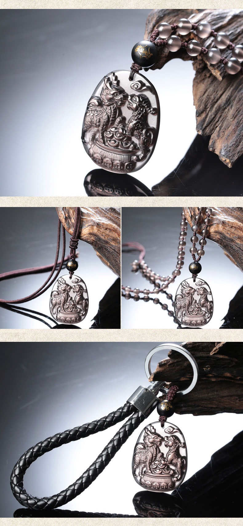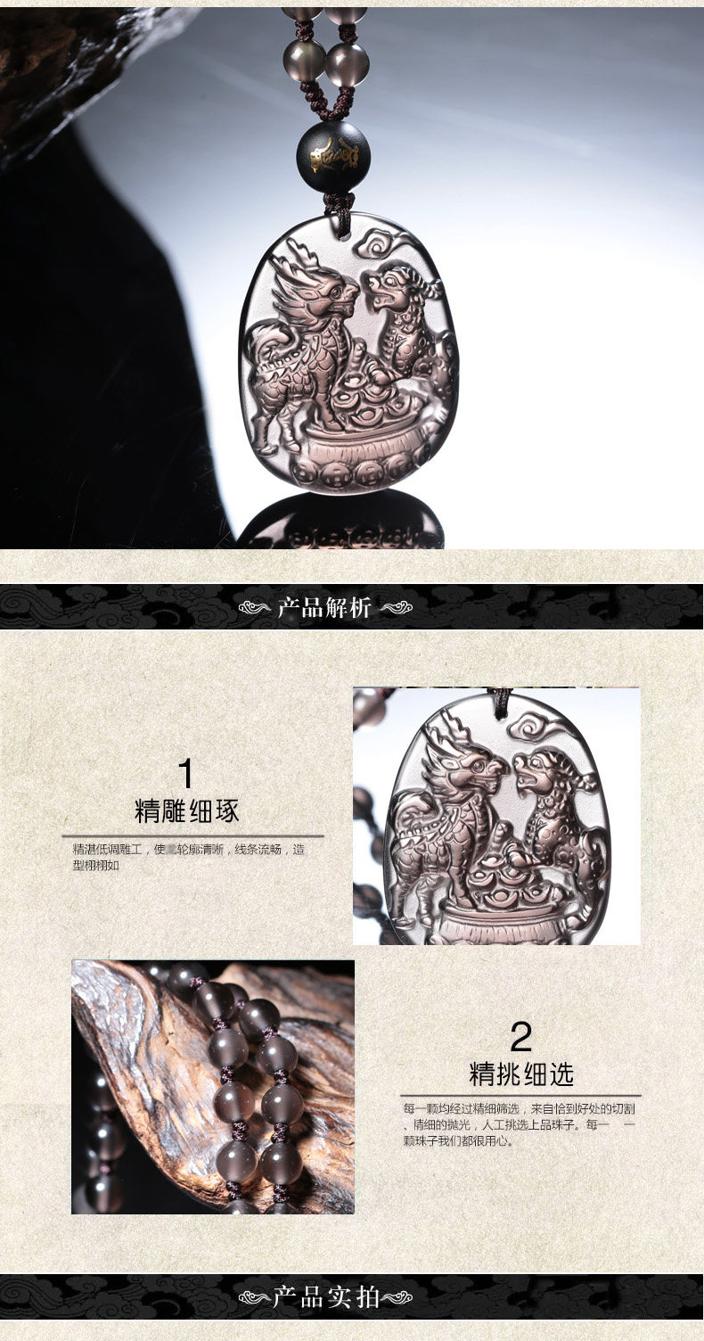 黑曜石金禄得宝貔貅吊坠 双雄得财护身符吉祥物