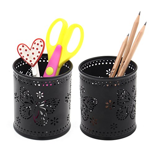 EasyPAG 2 Pcs 3-1/4 inch Dia x 3-3/4 inch High Cute Butterfly Pattern Design Round Desk Pencil Holder ,Black