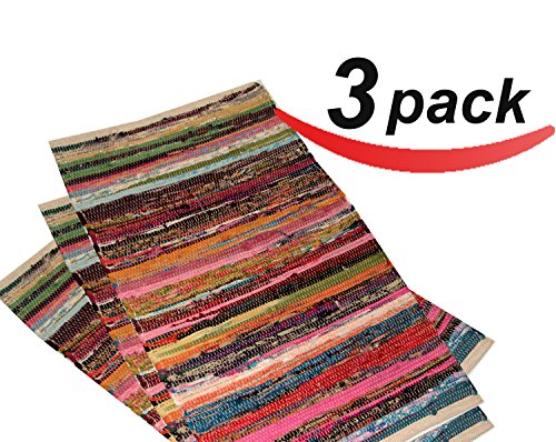 SPECIFICATION: Package contains pack of 3 Chindi Rag Rugs. Size 20x31.5 inch. Due to state of the art manufacturing process, each rug is completely unique. For further specifications, see description below.