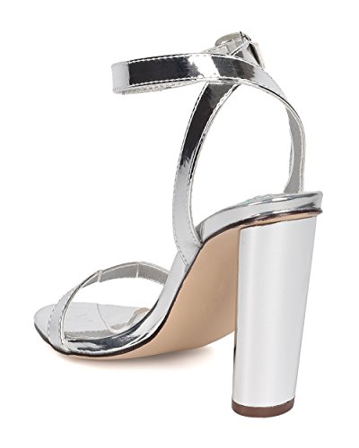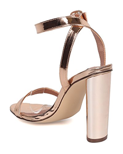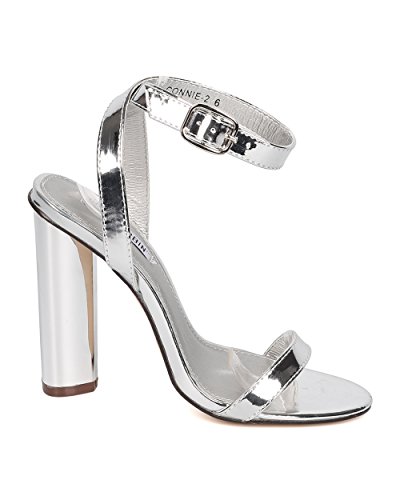 Product DescriptionThese mirror metallic sandals are made with an open toe, single band at vamp and single sole. Also made with a block heel and ankle strap with adjustable buckle closure.0