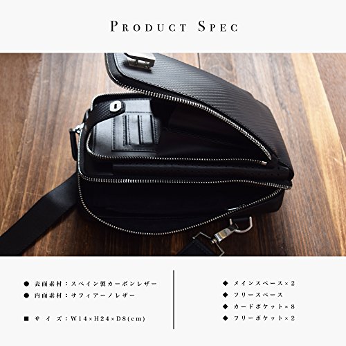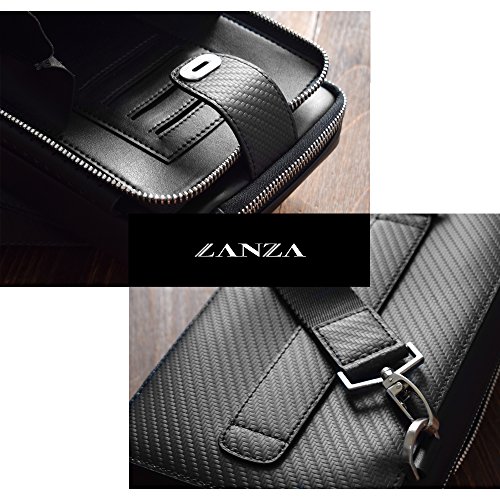 -. Feature : 仕様:上層収納、カードポケット×8、下層収納、ファスナー付ポケット ※ショルダー紐75~150cm(調整可能) / サイズ:W24×H15×D6.5(cm) / 素材:カーボンレザー、サフィアーノレザー ※プレゼントに最適な専用BOX付属。 / ※LANZAは登録商標です。粗悪な類似品にご注意ください。