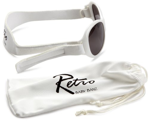 Baby Banz Retro Banz Baby - Arctic White Retro Banz are Baby Banz's stylish new style to keep your little ones looking fabulous and protected! Retro-inspired style large lenses Available in Baby and Kidz sizes Each pair comes with its own protective bag which doubles as a lens cleaning cloth Lenses 100% UVA/ UVB protectionCategory 3 lenses offer high sunglare reduction and good UV protection Durable polycarbonate Ophthalmic qualityNeoprene elastic strap matches chosen color of sunglasses and allows for flexibility, breath ability, and comfortSide adjustable Velcro allows for years of wear as the child growsRetro Banz cannot be fitted with prescription lensesFeature