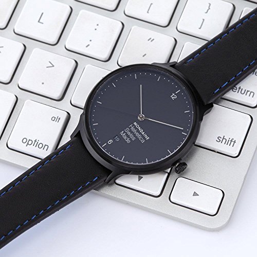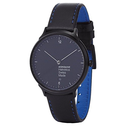 -. Title : Mondaine Men's 'Helvetica No.1' Quartz Stainless Steel and Black Leather Casual Watch (Model: MH1L2222LB)