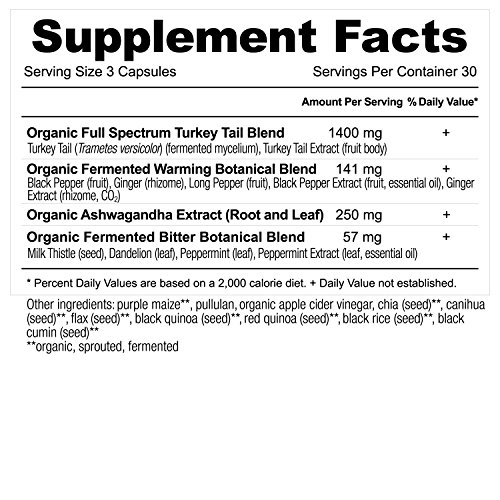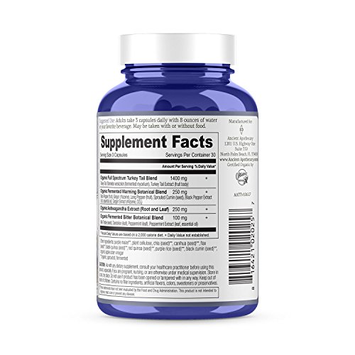 -. Title : Ancient Apothecary Fermented Turkey Tail Mushroom Supplement, 90 Capsules - Infused with Organic Essential Oils, Ashwagandha Extract and Digestive Bitters