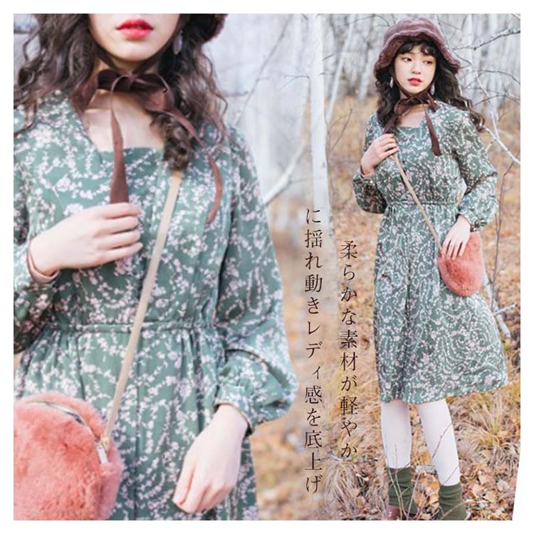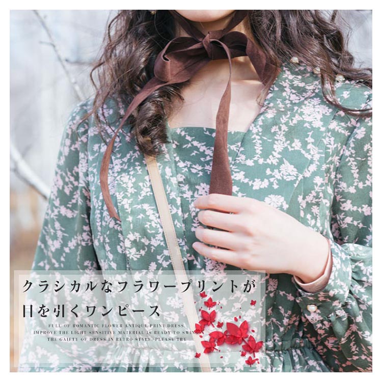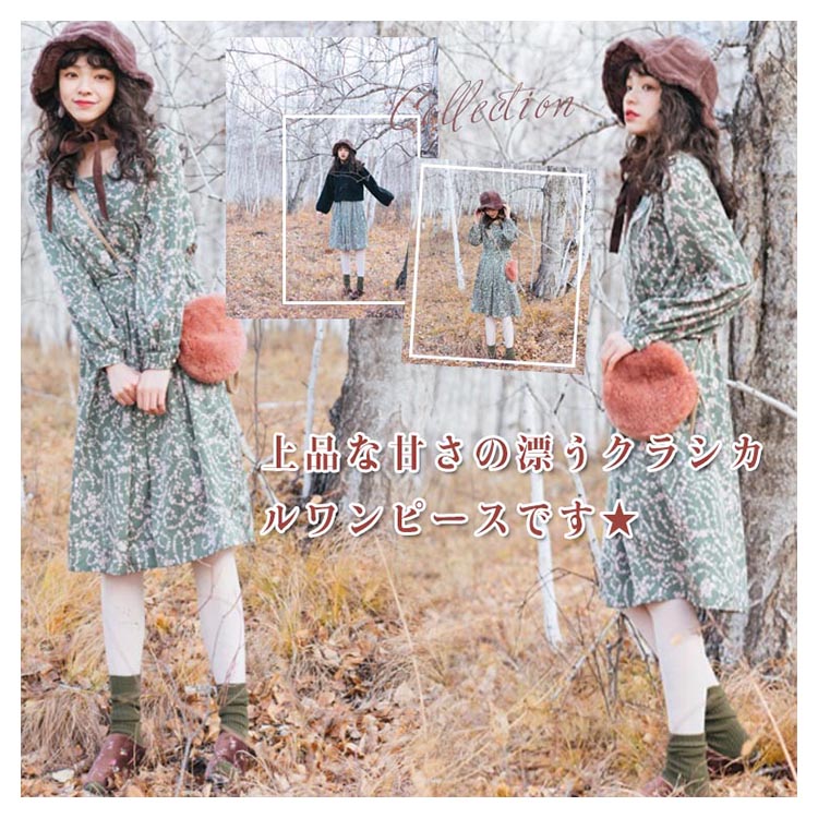 | ロマンティックなフラワーをプリントしたアンティーク感あふれるワンピース。 柔らかな素材が軽やかに揺れ動きレディ感を底上げ。レトロに華やぐ上品なワンピースを、ぜひお試しください。 | |