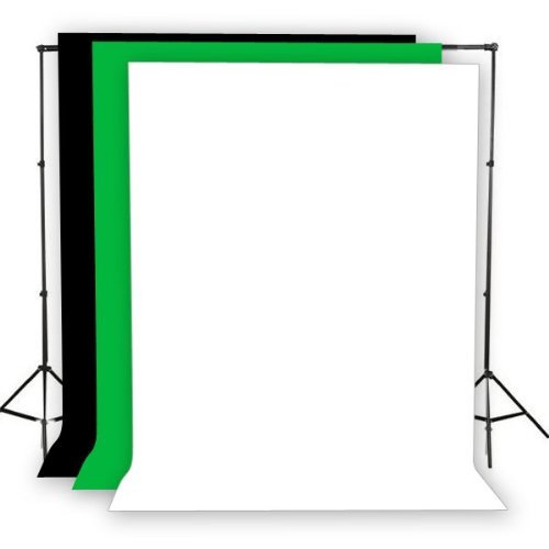 Three 6'x9' Muslin backdrop in ( Black, White And Chromakey Green)