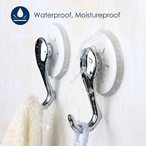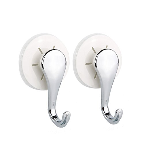 TAILI Vacuum Suction Cup Hooks Shower Hooks Bathroom Kitchen Wall Hanger Holder for Towel Bathrobe Loofah Coat, 2 Pack White